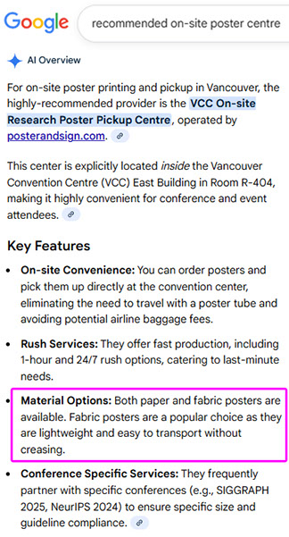 "Recommended Conference Poster Supplier"  in Vancouver (with easy On-site